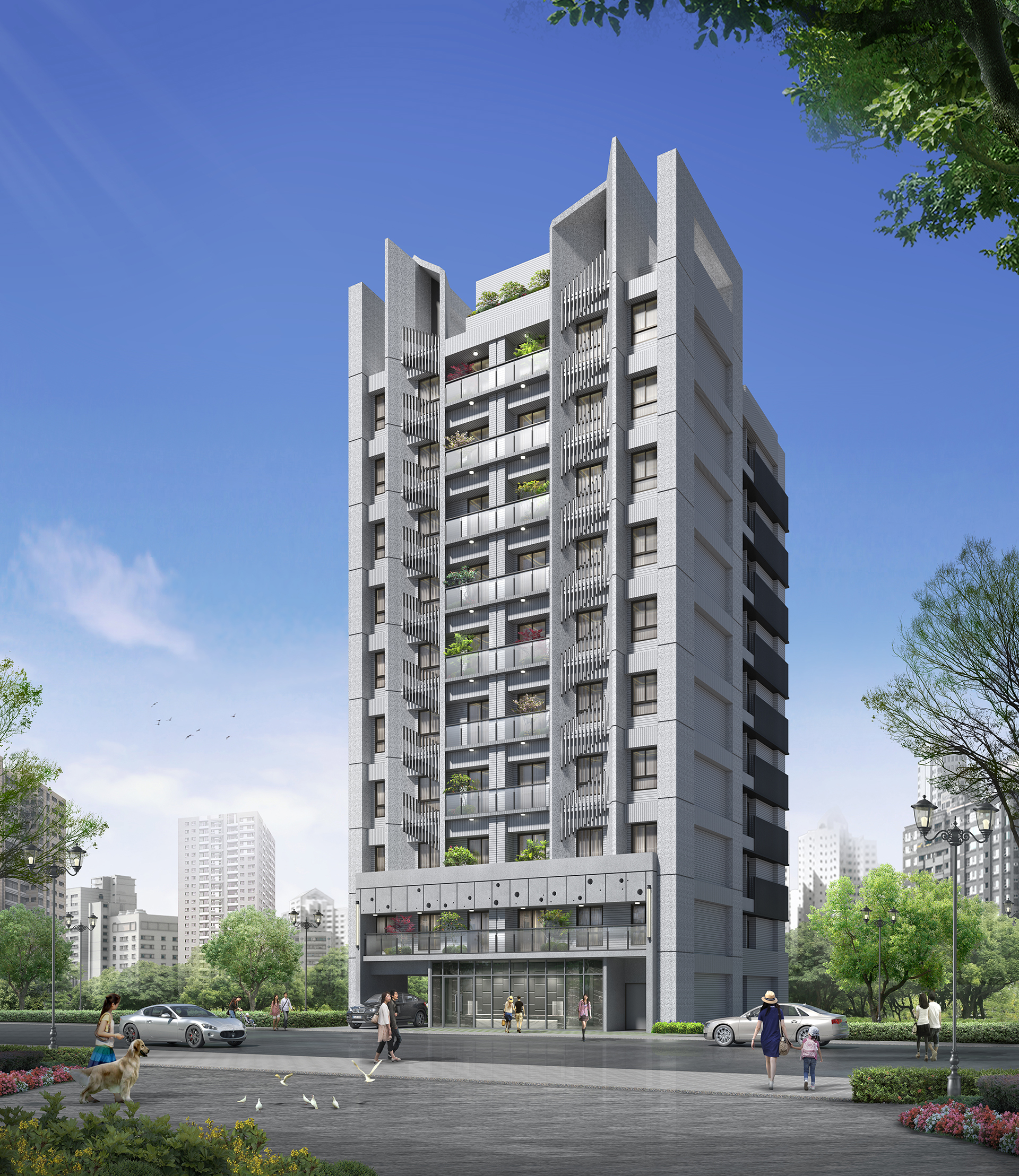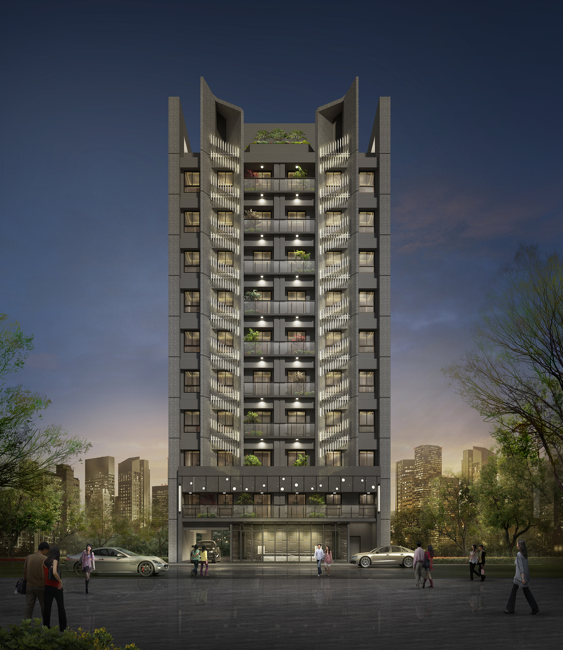 「猶如在城市盡情奔馳的俐落線條,加上光影強弱的層次配合,令人眼睛為之一亮的F1光感建築就此誕生。