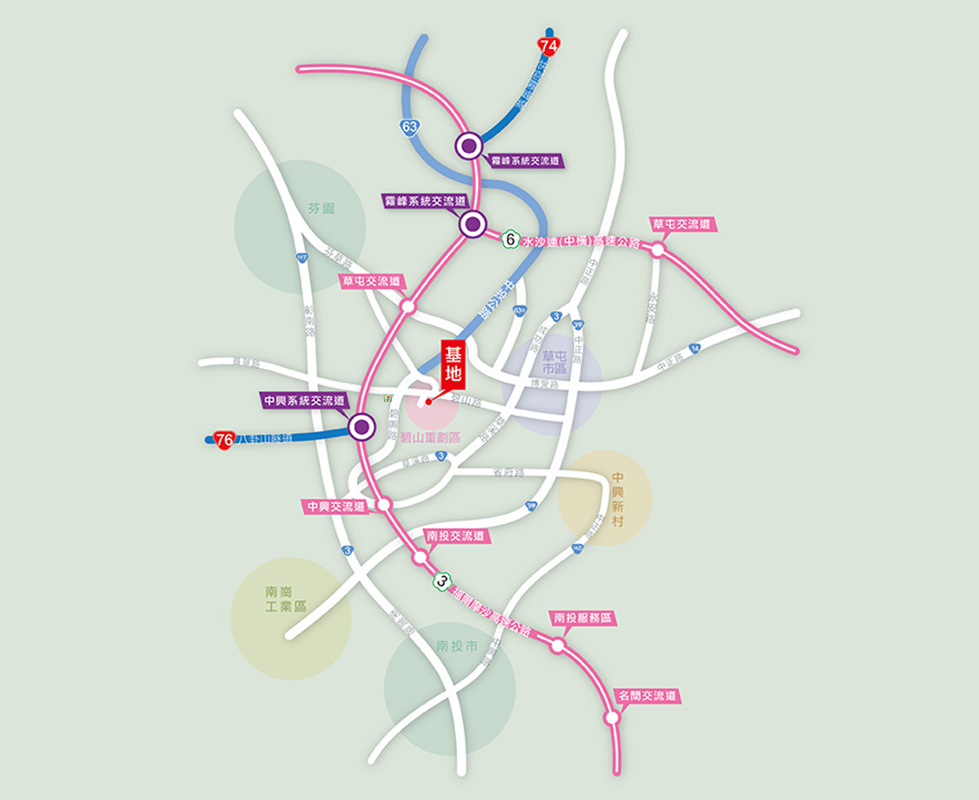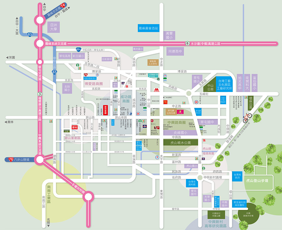 玉帶環腰,親水公園就在門前,八分鐘高速便利,快速連接國道3、國道6、74與76號快速道路,往返縣市好方便,極速生活就此開始。